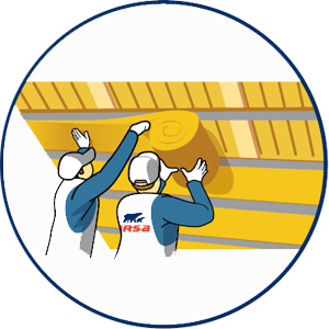 Aplikácia minerálnej izolácie URSA GOLD 35 medzi krokvy. Izoláciu medzi krokvy postupne vkladáme ľahkým vtlačením po oboch stranách jej výšky, až zaplníme celé krokvové pole. Na zabezpečenie izolácie v krokvovom poli pri aplikácii môžeme použiť fixačné prvky napr. drôtovanie.